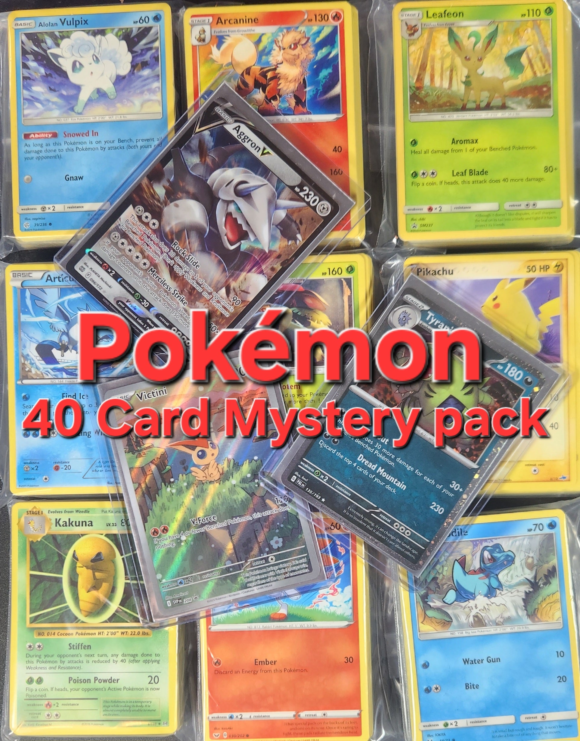 Mystery packs come with a total of 41 cards, 35 Bulk common, uncommon and rare, 5 Reverse Holofoils, and 1 holofoil, EX, GX, V, or Full Art Rare! Cards vary between sets Dating Back to 2012 to 2025. Perfect surprise packs for anyone completing Master sets.